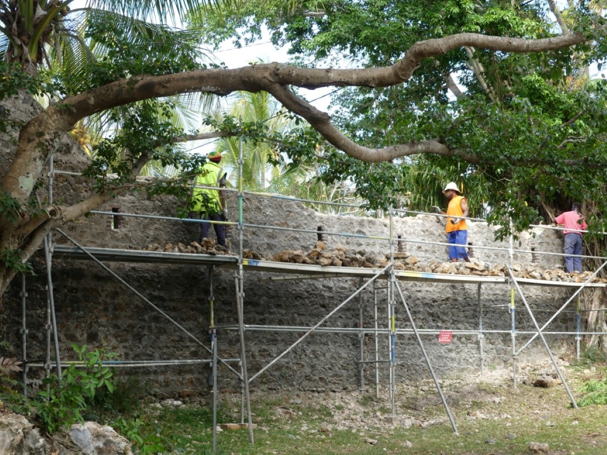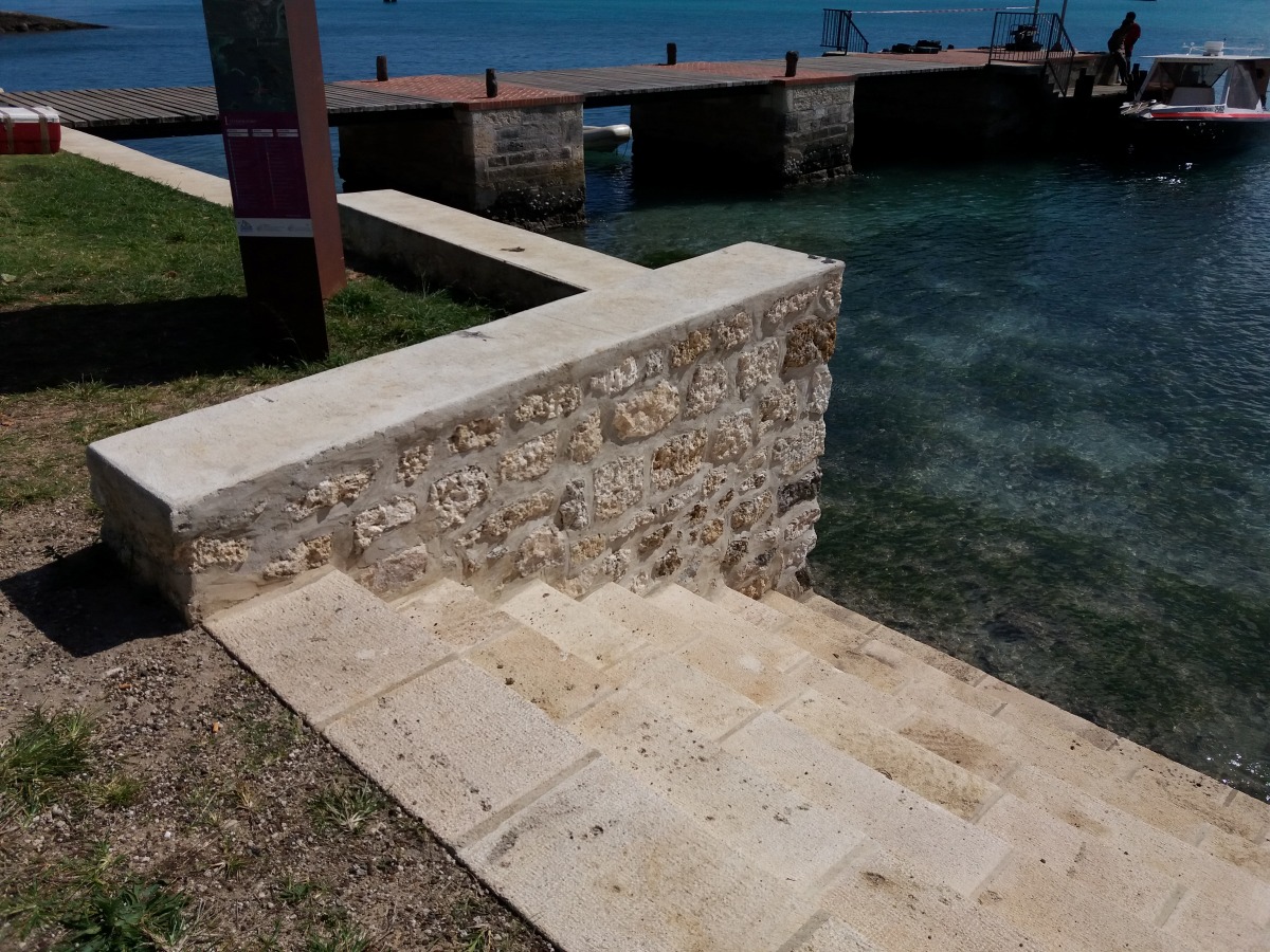 - 2014 : Restauration du mur de soutènement de la chaussée (quai) et petit warf
